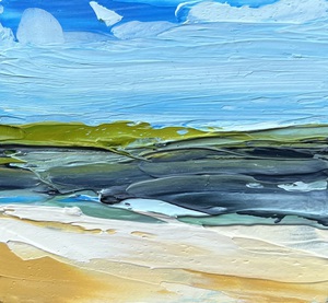 2025Mini zeegezicht, olieverf op houten blokje.